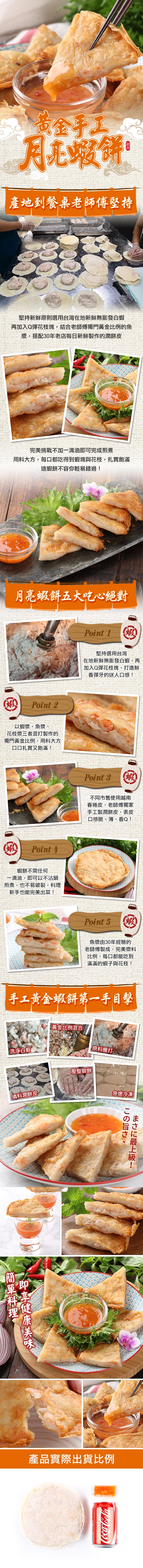 食用方式:蝦餅無須解凍,熱油鍋約160度,放入月亮蝦餅,煎/炸至表皮上色,膨起後再翻面繼續煎/炸至金黃,即可食用。