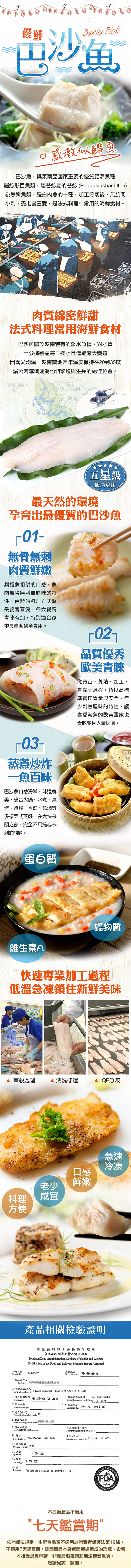 2.愛上新鮮巴沙魚因無澎發,故魚肉本身會略帶原始淡水魚特有的藻味,請安心食用。