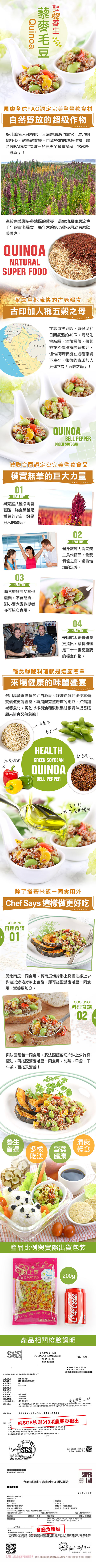 產品成份:毛豆、藜麥、洋蔥、橄欖油、紅椒、黃椒、糖、鹽、黑胡椒粒
