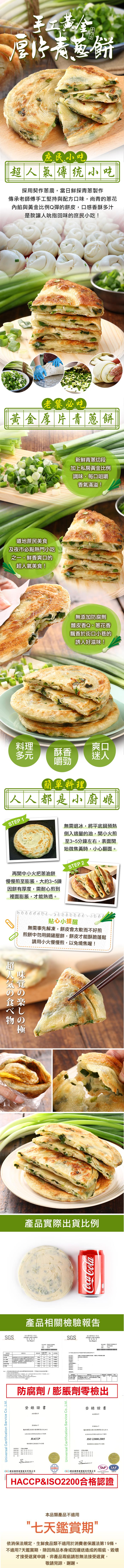 產品成份:麵粉、青蔥、水、大豆沙拉油、棕櫚油、鹽、胡椒粉、味素(L-麩酸鈉)。