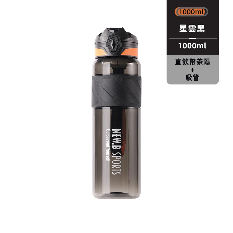 NEW.B星曜運動水壺 TRITAN材質直飲吸管隨行杯 一鍵彈蓋安全鎖防漏健身水杯 矽膠套防滑防燙運動水壺 提繩便攜水壺