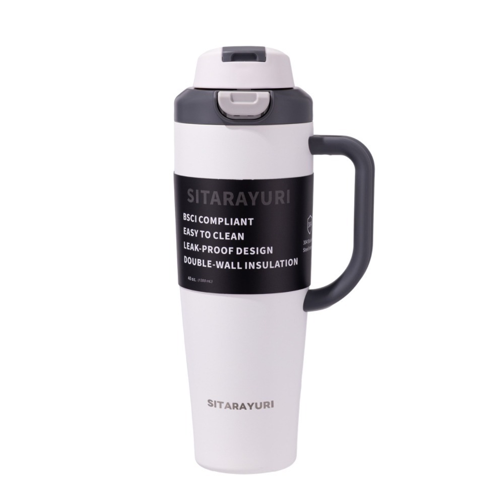 SITARAYURI大容量雙飲手柄彈蓋1200ml 304不鏽鋼保溫杯新款手把彈跳簡約便攜保溫杯旋轉杯蓋防漏保溫 車載杯