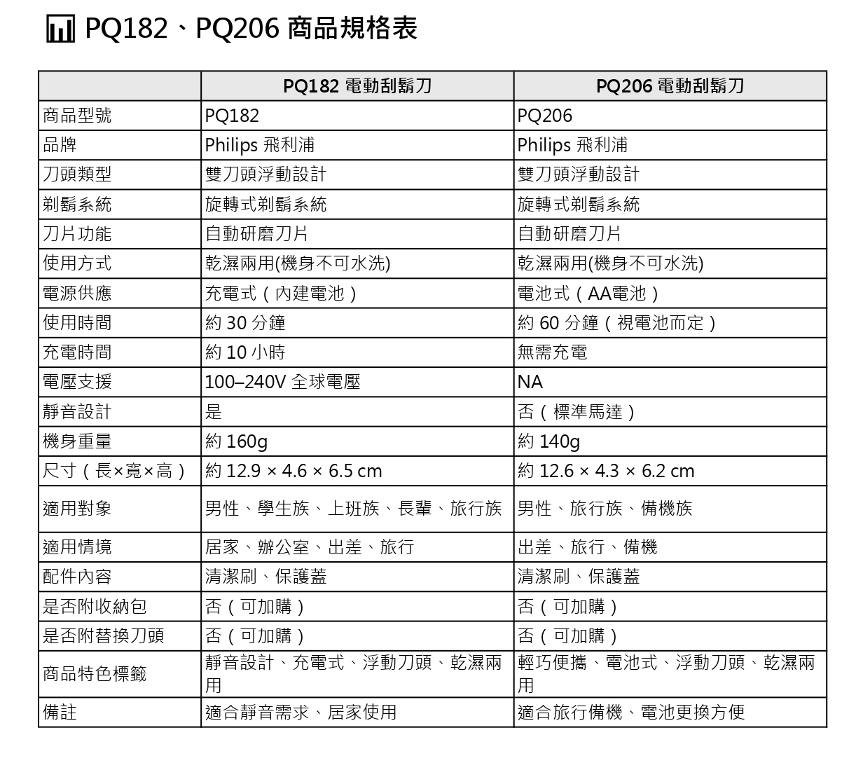 【特選雙機組 】PHILIPS飛利浦 PQ182/16 (PQ206/18) 雙刀頭 電動刮鬚刀 送禮/自用隨意搭