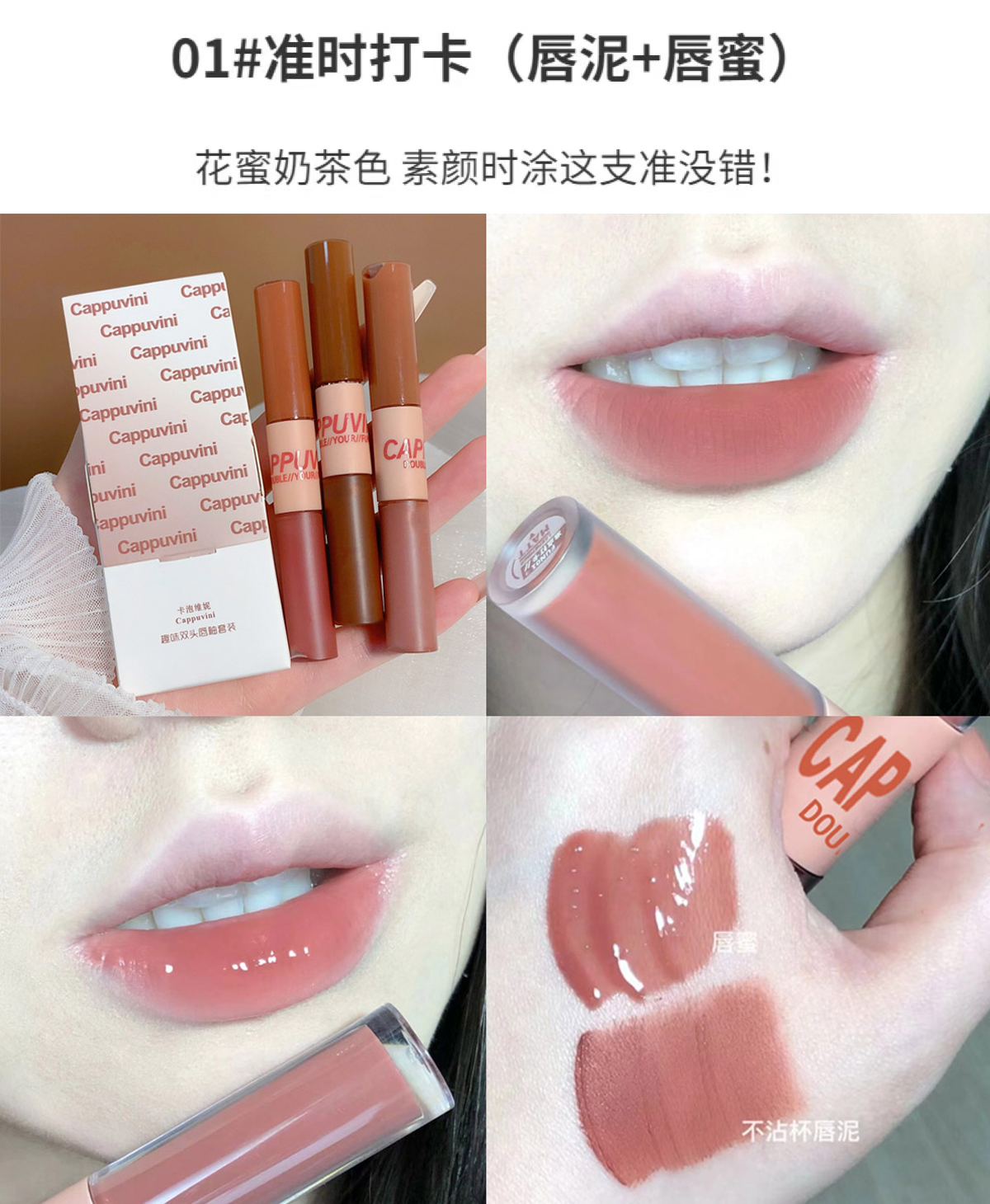 ✨台灣現貨 公司正品 Cappuvini卡泡維妮 雙頭唇釉唇泥 鏡面水光口紅 不掉色持久 平價學生唇蜜 小眾品牌