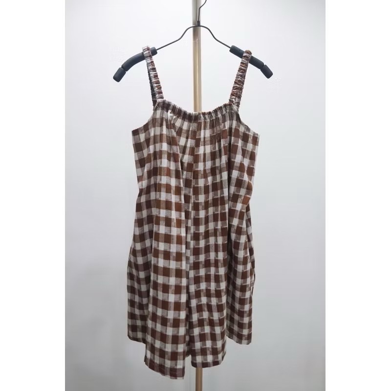 格紋無袖連身褲採用細肩帶設計,肩帶有鬆緊皺摺細節,胸前也有鬆緊帶設計,整體風格休閒可愛,適合夏季穿搭或居家休閒時穿著,孕媽咪有很適合噢!‼️如有任何問題,歡迎詢問‼️