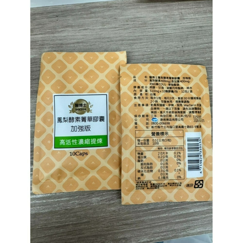 成分:鳳梨酵素400mg(添加量400mg,約60萬CDU)、硬脂酸鎂