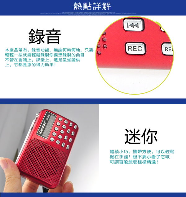 ◎收音機頻率:(AM)522Hz -1710MKz (FM)70 -108MHz