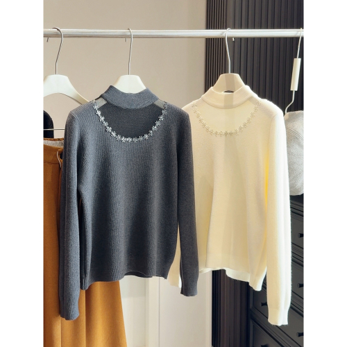 預購款C175/加厚一體絨掛脖網紗鏤空毛衣女秋冬新款顯瘦加絨內搭打底針織衫