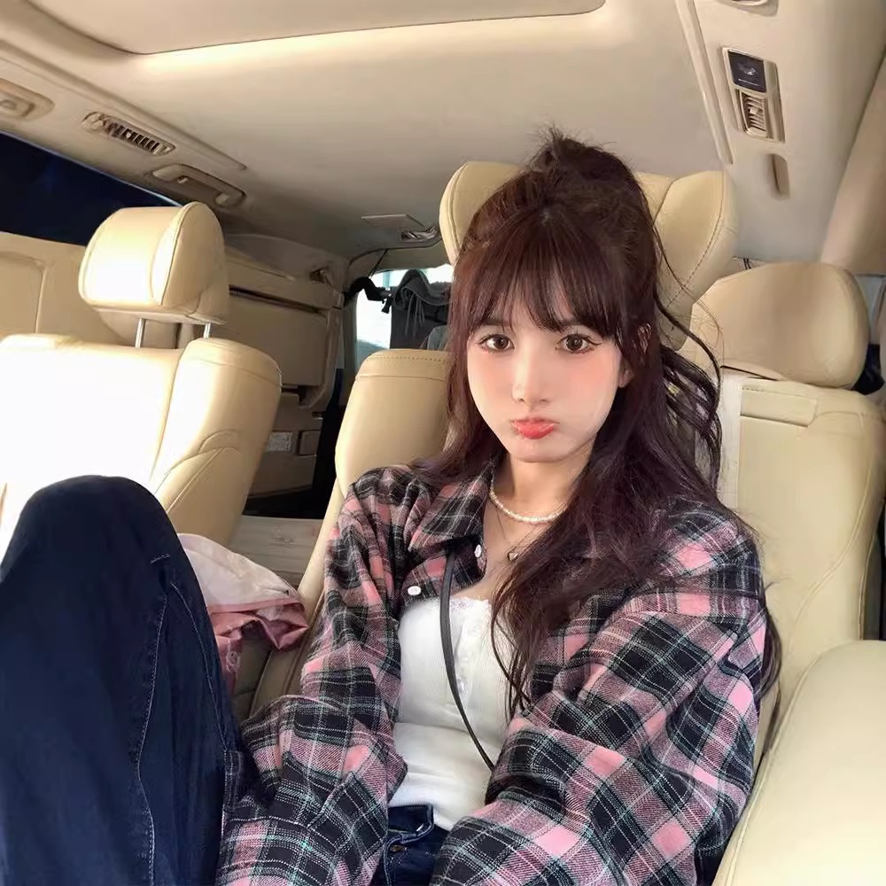 預購款C179/復古格紋女慵懶風寬鬆襯衫