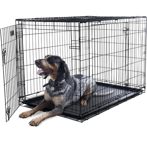 不傷腳 大型中型犬旅行金屬雙門折疊室內室外小狗遊戲狗籠 帶分隔器和手柄塑料托盤的狗籠寵物籠107X79X73.5CM