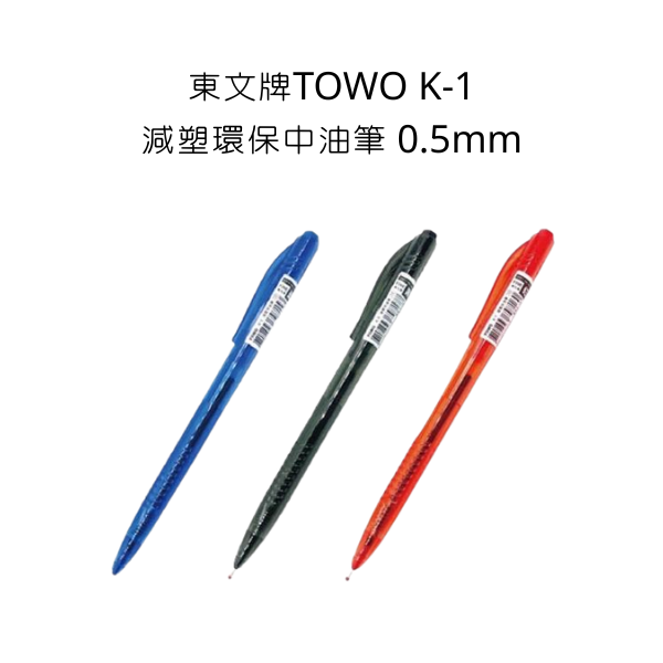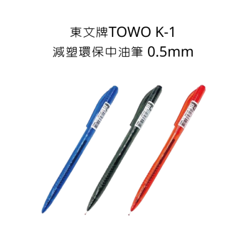 #東文牌 #TOWO #K-1 #減塑環保中油筆 #0.5mm #中油筆 #紅 #藍 #黑 #K-1中油筆