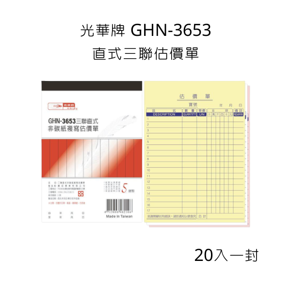商品名稱:光華牌 GHN-3653(直)三聯估價單-單本