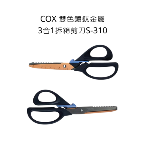 #COX #三燕 #雙色鍍鈦金屬 #3合1拆箱剪刀 #S-310 #剪刀 #拆箱剪刀 #鈦金屬 #3合一剪刀