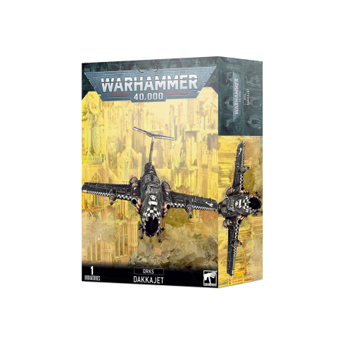 This multi-part plastic boxed set contains the components necessary to build one Dakkajet. As well as a Grot Gunner, it includes a range of weapons options: a big shoota, boom bombs, burna bombs, skorcha rokkits and supa shootas, as well as an Ork Bommer transfer sheet.