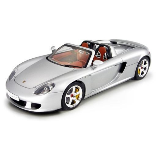 About the Porsche Carrera GT: The Porsche Carrera GT grabbed the world’s attention when first unveiled as a concept car at the 2000 Paris Auto Show. Promoted as Porsche’s next generation flagship super sports car, the Carrera GT was officially unleashed onto the international motoring market in 2003. Incorporating the latest and most extreme racing technology, the Carrera GT lines up against the impressive range of super sports cars offered by the worlds top makers, such as the Enzo Ferrari and the Mercedes-Benz SLR McLaren. Featuring a powerful 5.7 liter V10 engine, carbon-fiber monocoque chassis and push-rod suspension all wrapped up in classic Porsche style and elegance, the Carrera GT is the ultimate high-end sports car. About the Model: 1/24 scale plastic model Overall length: 193mm, Overall width: 83mm, Overall height: 49mm Rear hood can be opened and closed allowing display of engine and mechanics even after completion. Monocoque chassis and front and rear suspension accurately reproduced. Metal plated parts include wheels and exhaust pipe. Rear spoiler can be assembled in opened or closed position. Display quality further enhanced by metal transfers used for mirrors and Porsche emblem.