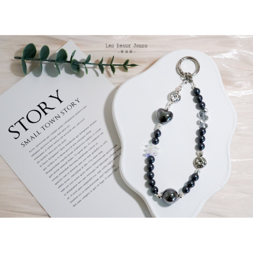 材質|黑色仿珍珠、人造水晶玻璃、樹酯配件、合金