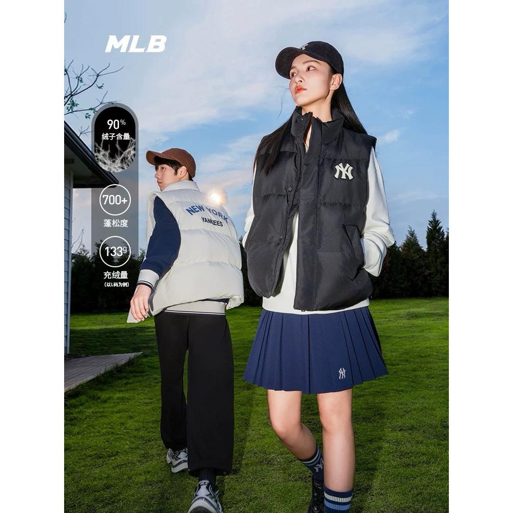【LUNA-K】MLB 25年新款紐約洋基隊LOGO圖紋羽絨背心 黑色 白色 綠色*S-XL。C50925