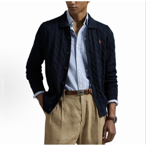 Polo Ralph Lauren 純色刺繡小標長絨針織外套 黑色 灰色*S-XL