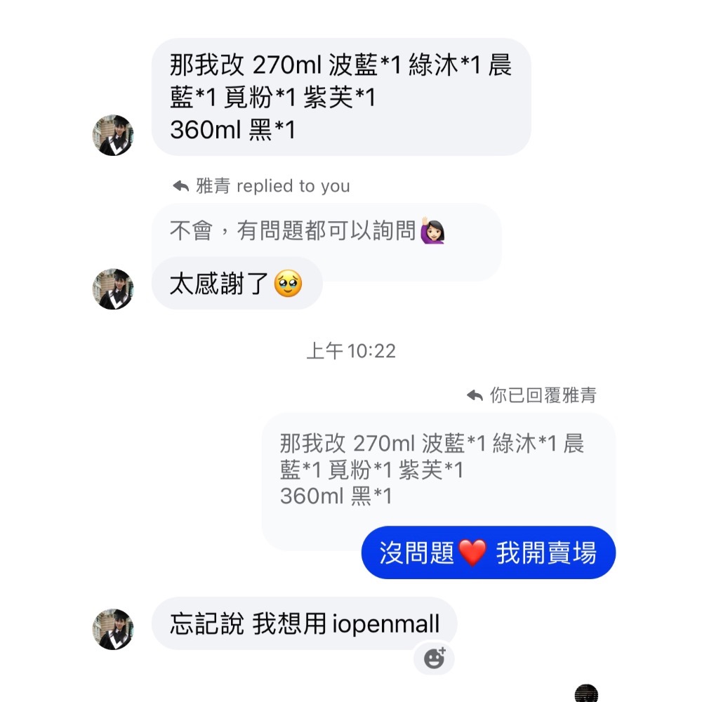 270ml波藍 晨藍 覓粉 紫芙 綠沐各1 / 360ml蒔黑特殊色