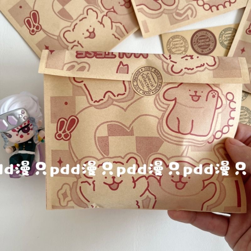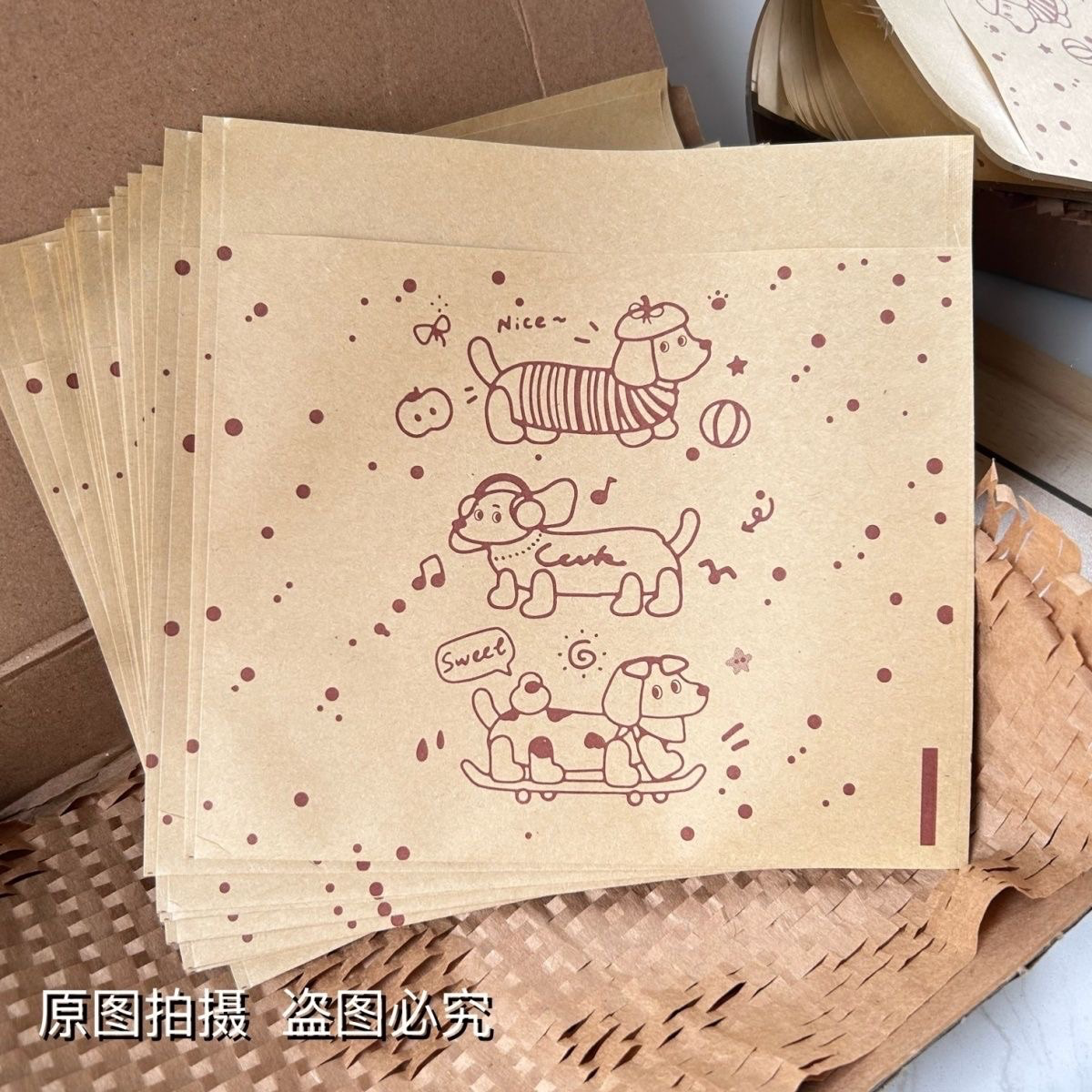 現貨✨【紙袋~印刷防污牛皮紙袋 15x14cm】奶油小狗/線條小狗/臘腸小狗 30入/份