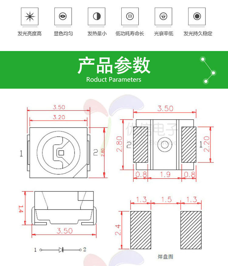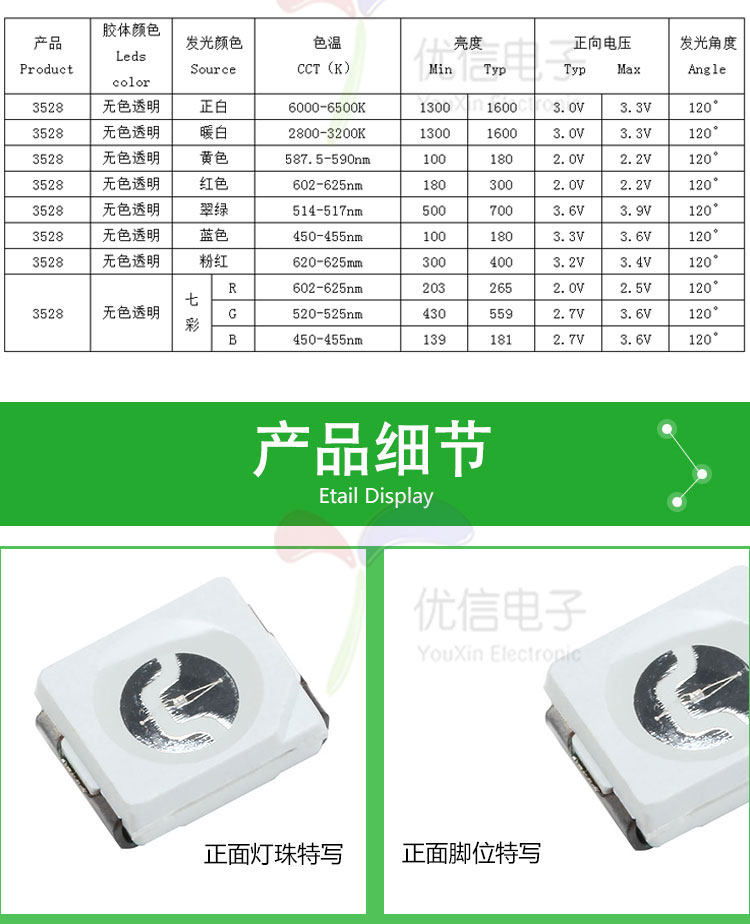 3528 LED顏色表,點擊以下顏色打開鏈結加入購物車 ![]()