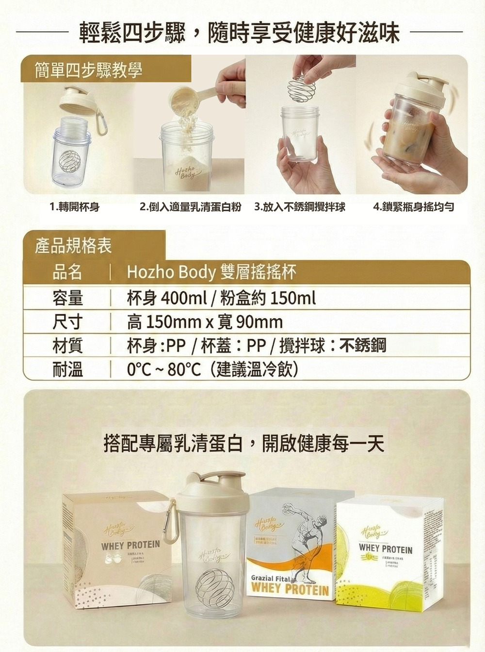 還在煩惱出門運動要帶一堆瓶瓶罐罐嗎? 【Hozho Body 好滋好】雙層搖搖杯,專為健身愛好者與忙碌上班族設計,將「收納」與「攪拌」功能合而為一,讓你的健康生活更輕盈、更時尚!