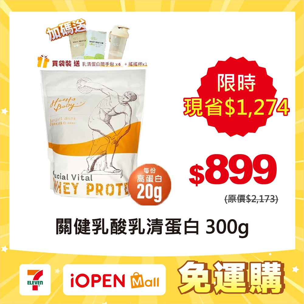 【7-ELEVEN 門市團購】好滋好 關健乳酸乳清蛋白300g/袋+加贈隨身6包+搖搖杯(獨家組)效期2026/03月