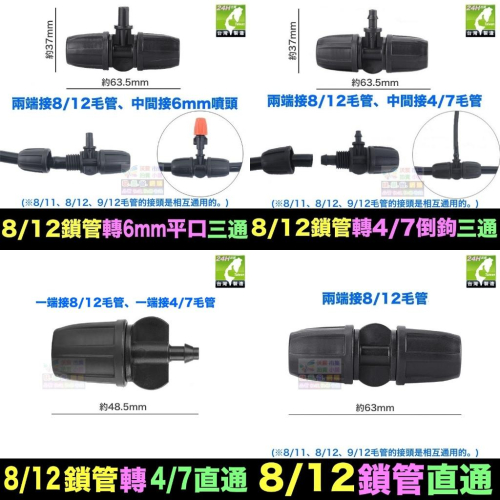🌀㊣【水博士】新款 全新料 8/11 8/12 9/12 4/7毛管 直通 三通 四通 鎖管接頭 滴灌 噴霧 降溫