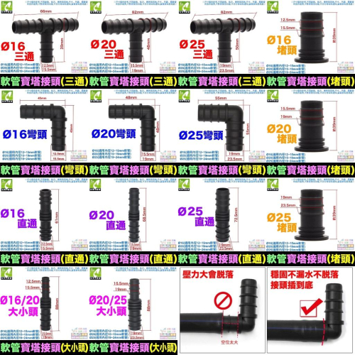 🐳㊣【水博士】Ø16~25mm軟管接頭 三通 彎頭 直通 堵頭 大小頭 PE管 PVC管 珠光管 寶塔接頭