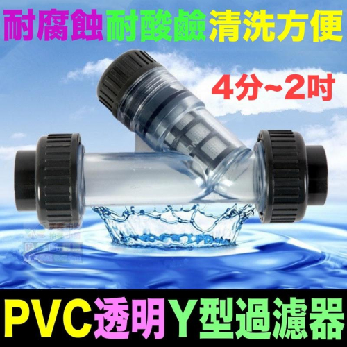 🐬㊣【水博士】4分 6分 1吋~2吋 透明Y型過濾器 高品質 UPVC 耐腐蝕 耐酸鹼 濾網可拆卸清洗(附螺牙轉接頭)