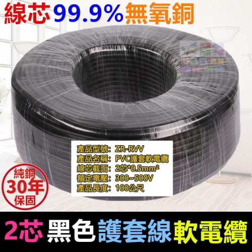 🧬㊣【無氧銅】電源線 黑色護套線2芯*0.5~1.5mm² 純銅 耐油耐磨耐酸鹼 抗日曬老化 抗UV阻燃外皮