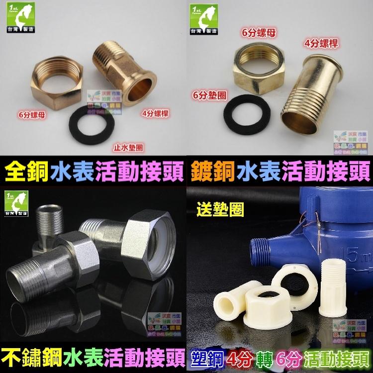 ⏱㊣【水博士】4分水表接頭 4分轉6分活動接頭 全銅 不鏽鋼 塑鋼 接頭 4分外牙轉6分內牙 大小接頭 送墊圈