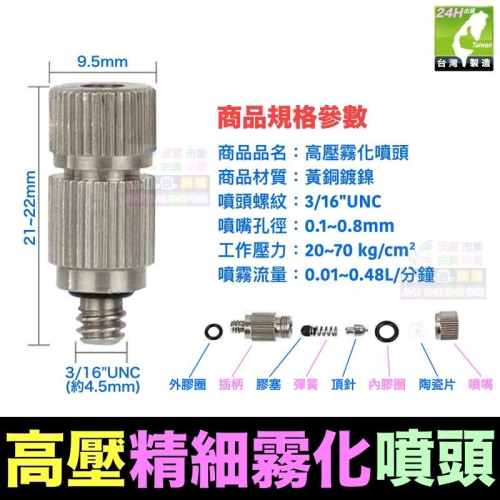 💫【水博士】2段式/3段式 高壓精細霧化噴頭 3/16”黃銅螺紋式陶瓷噴嘴 細霧降溫 加濕除塵 外銷歐美高品質