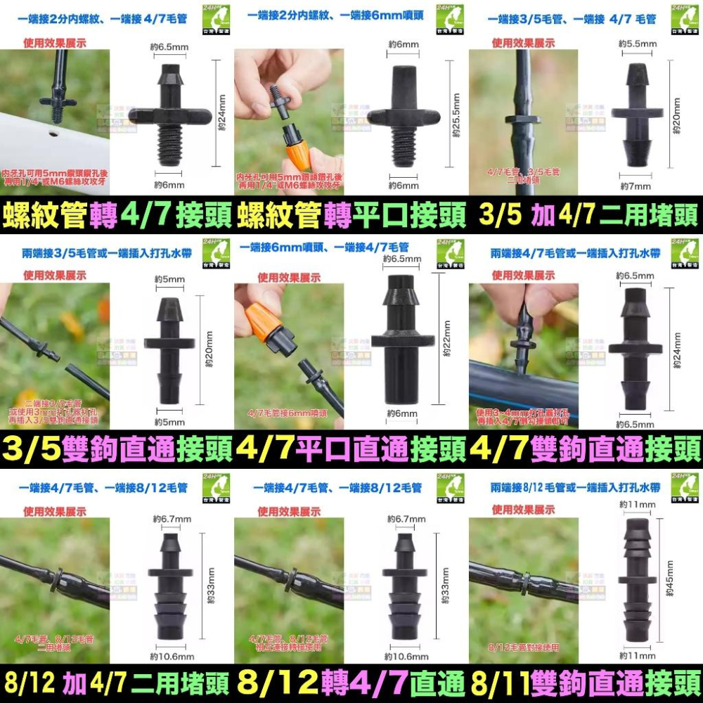 🎯㊣【水博士】全新料 8/11 8/12 9/12 4/7 3/5 毛管 直通 堵頭 螺紋管接頭 滴灌 噴霧 降溫