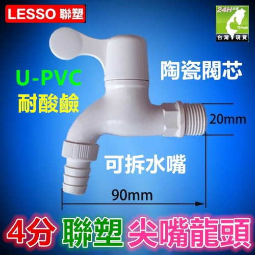 🐉 ㊣【正品】4分聯塑尖嘴龍頭 標準龍頭(加長款) 快開龍頭 食品及材質 U-PVC塑鋼 耐酸鹼 陶瓷閥芯 洗衣機 水龍