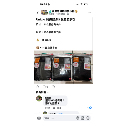 極暖發熱衣2件