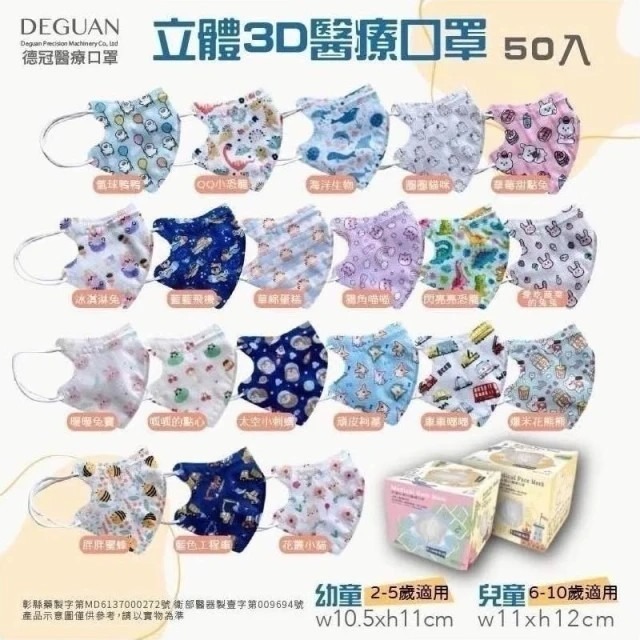 【德冠】兒童3D立體醫療口罩 (50入/盒)