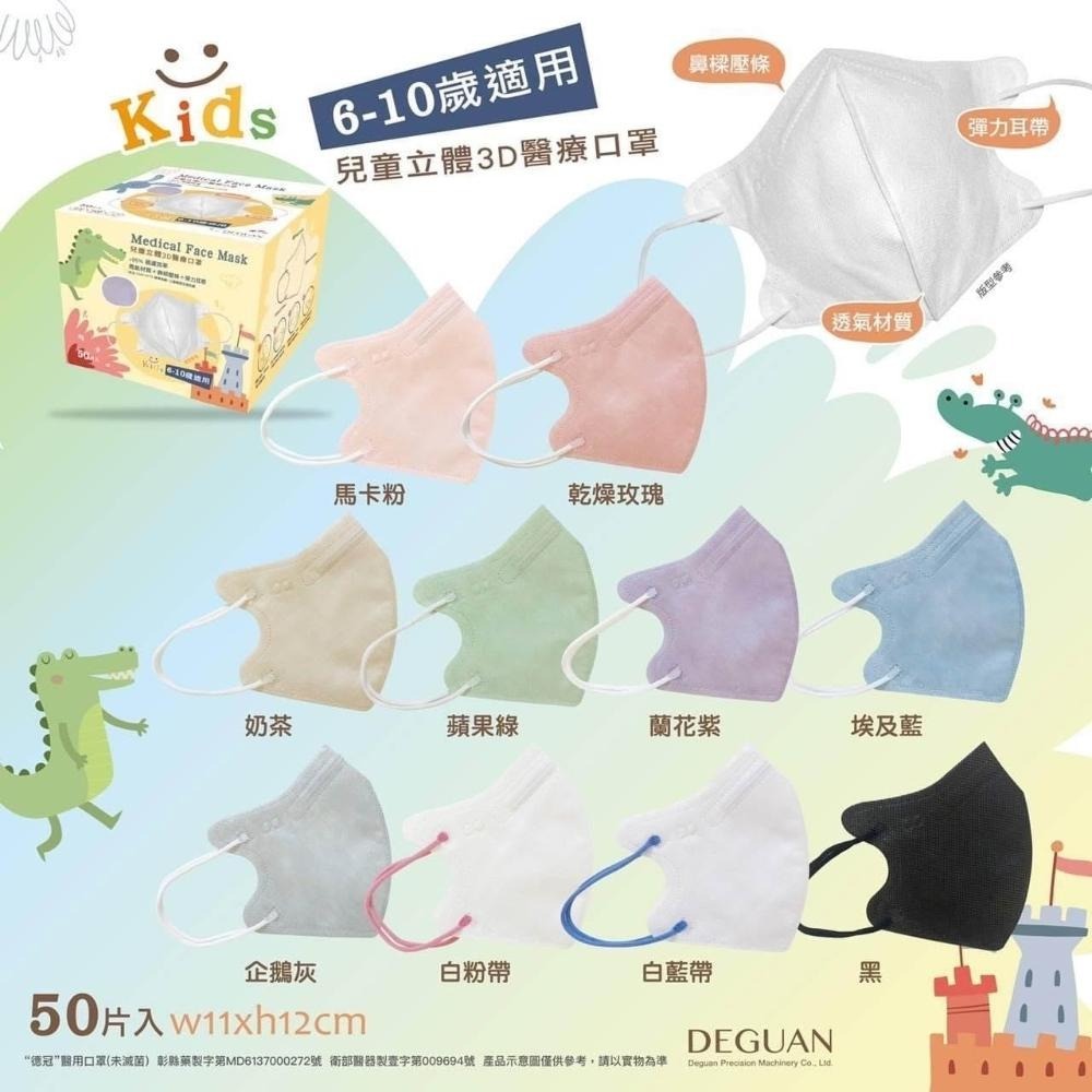 【德冠】兒童/幼童 3D立體醫用口罩 (50入/盒)