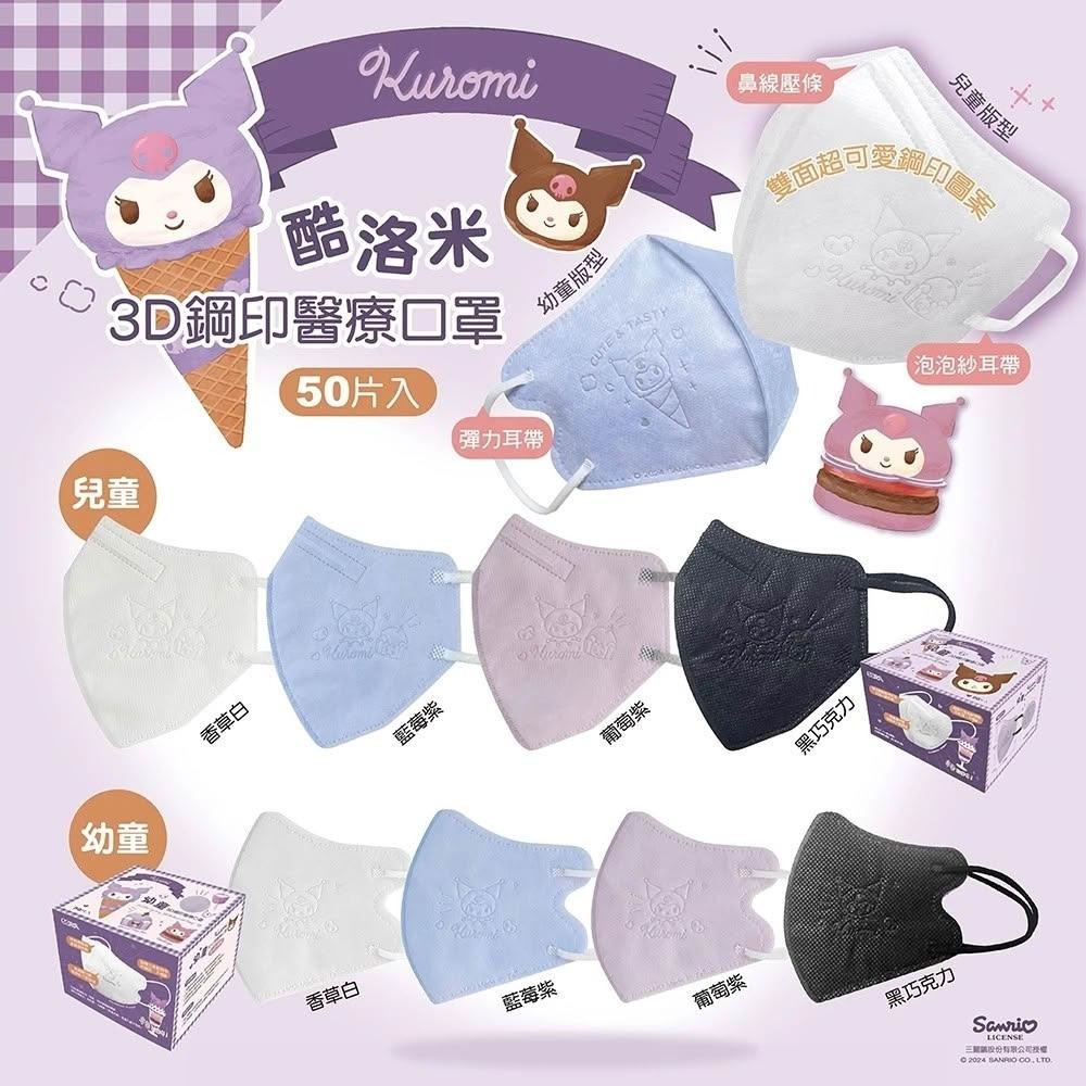 【興安】酷洛米甜筒款 兒童/中童/幼童 3D立體醫用口罩 (50入/盒)