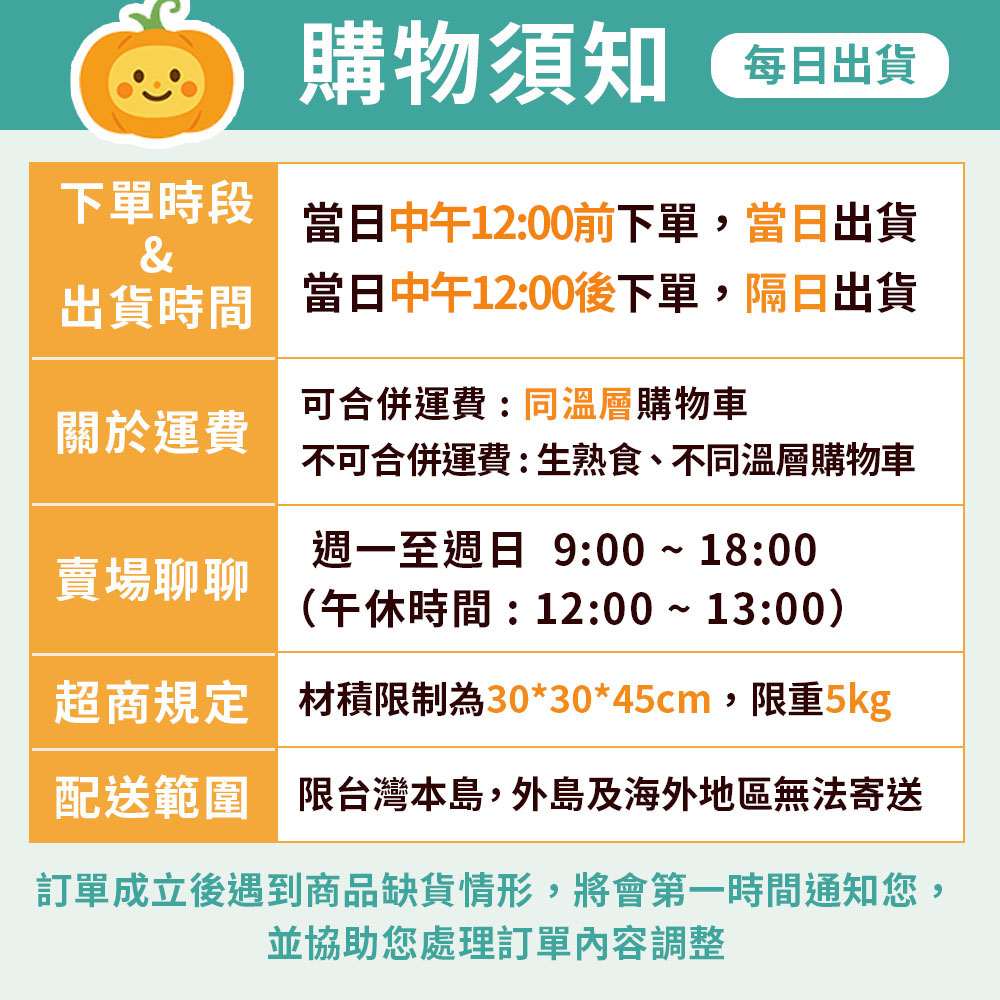 🟠不可合併運費計算 : 不同溫層購物車,生熟食不可合併運費計算。