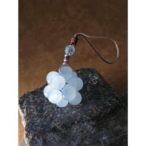 手作水晶珠球手機吊飾|冰透白果珠吊飾|手工編織水晶掛飾