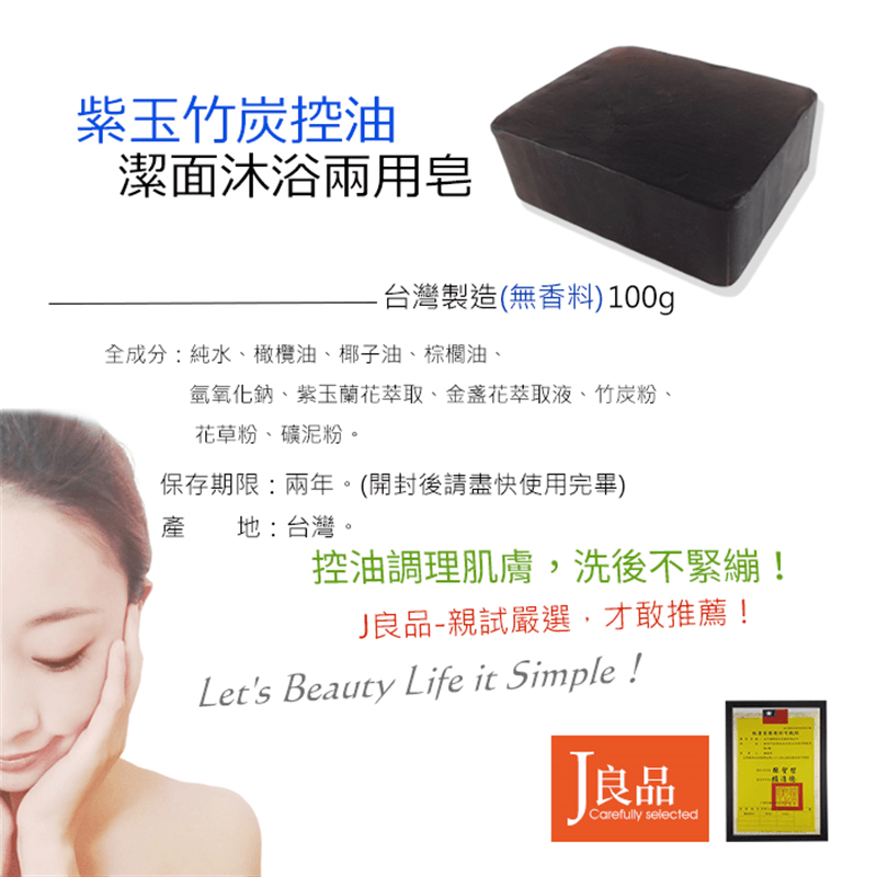 <紫玉竹炭控油潔面沐浴兩用皂> 無香料 100g Made in Taiwan