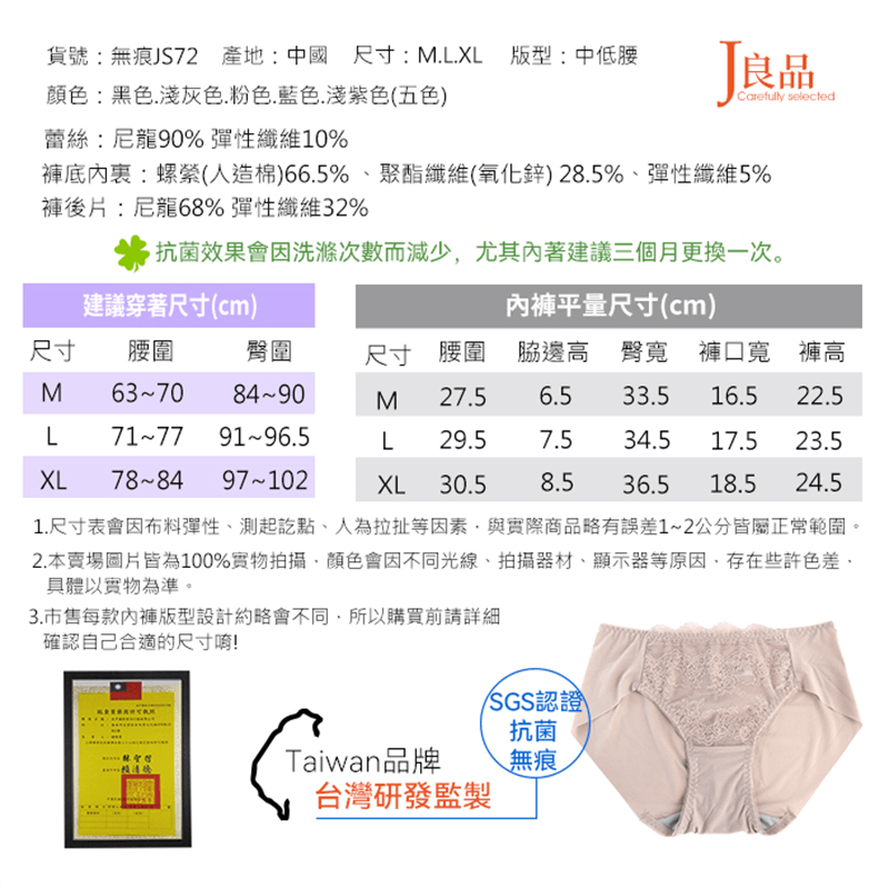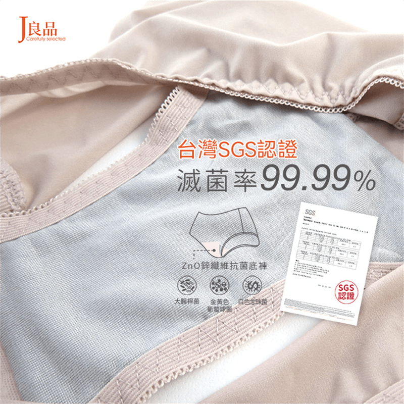 💖底褲添加抗菌鋅纖維,經 台灣SGS認證,金黃色葡萄球菌、白色念珠菌、大腸桿菌,滅菌率達99.99%.