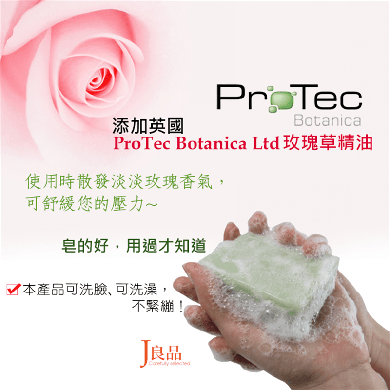 🌿.嚴選添加英國ProTec Botanica Ltd.玫瑰草精油,使用時散發淡淡玫瑰草香氣,讓您愛上洗澡~