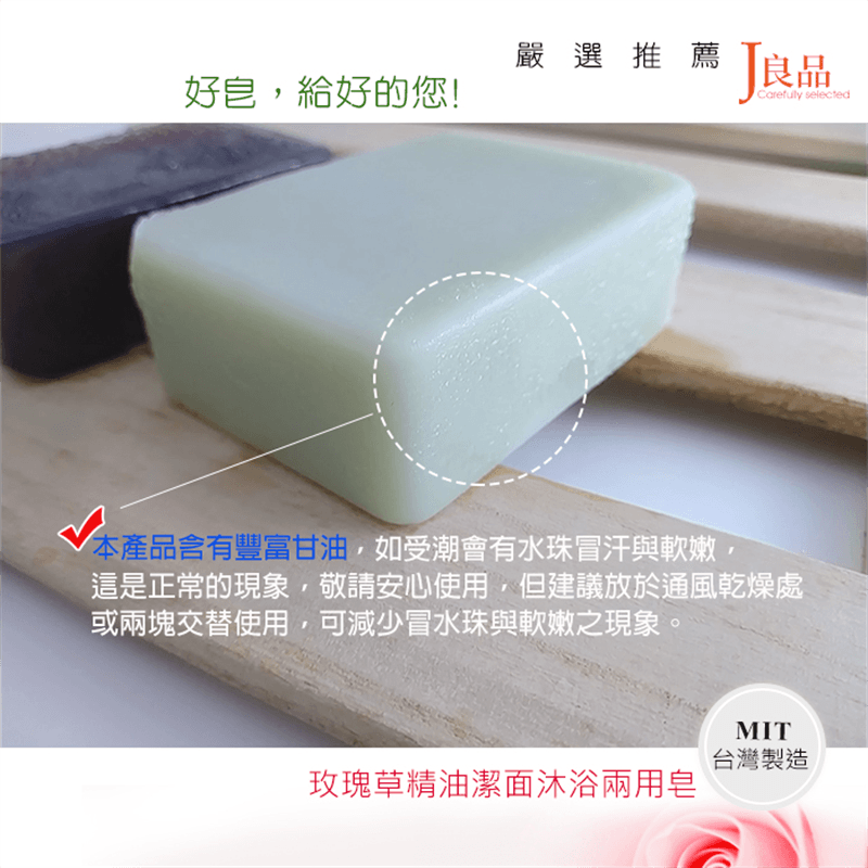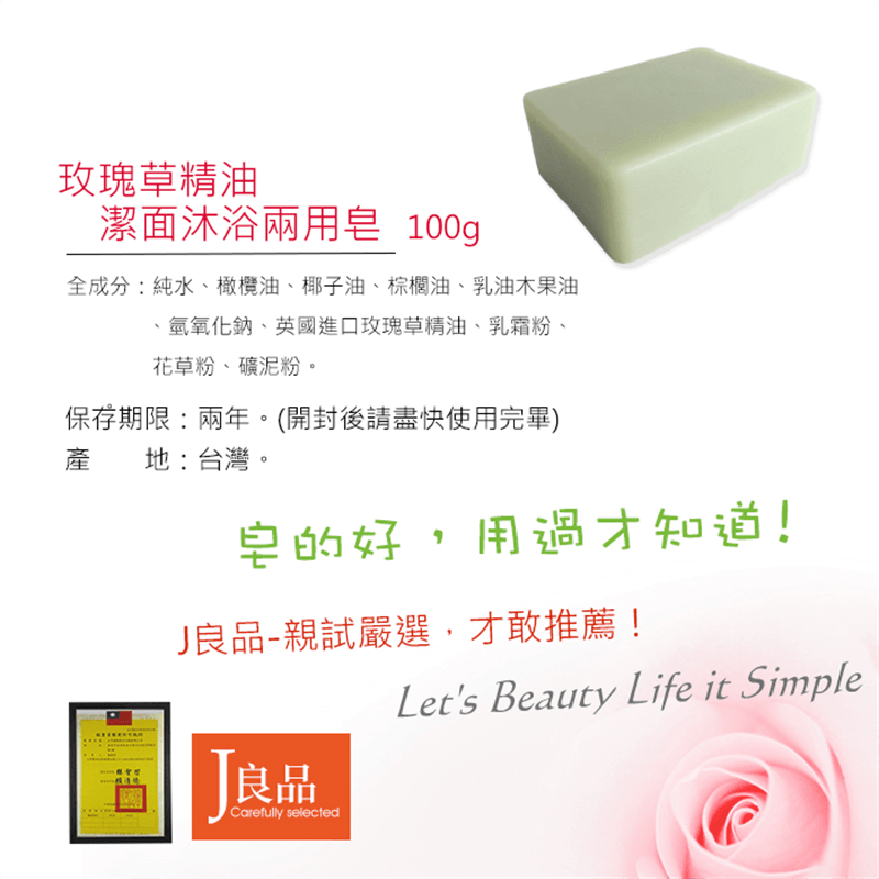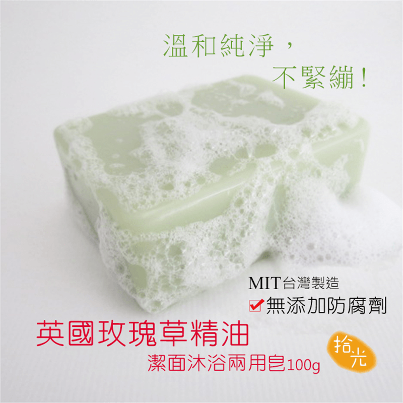 <台灣製 玫瑰草精油潔面沐浴兩用皂> 100g Made in Taiwan