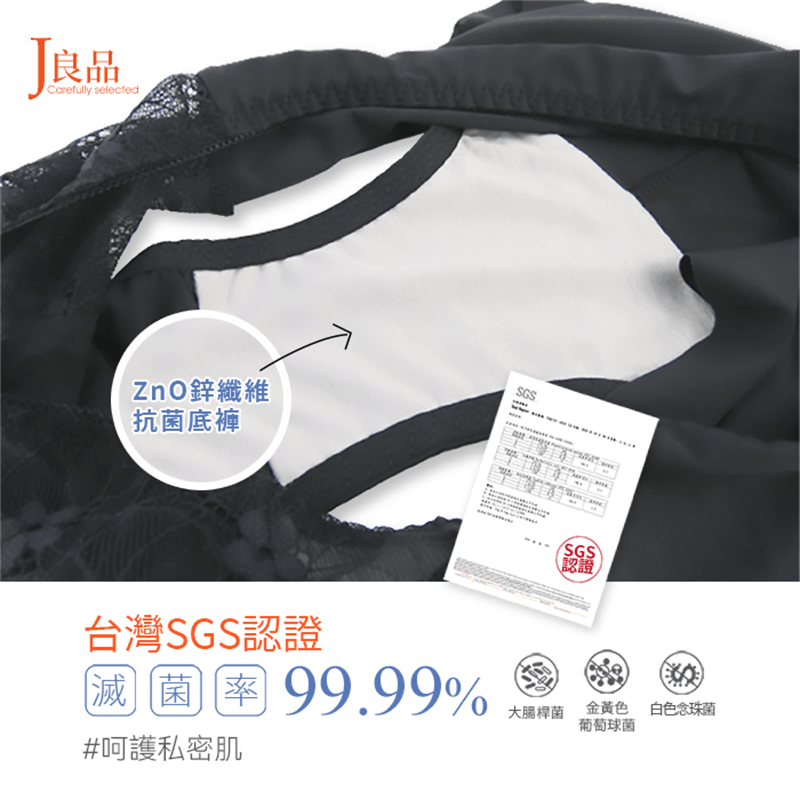 💖底褲添加抗菌鋅纖維,經 台灣SGS認證,金黃色葡萄球菌、白色念珠菌、大腸桿菌,滅菌率達99.99%.