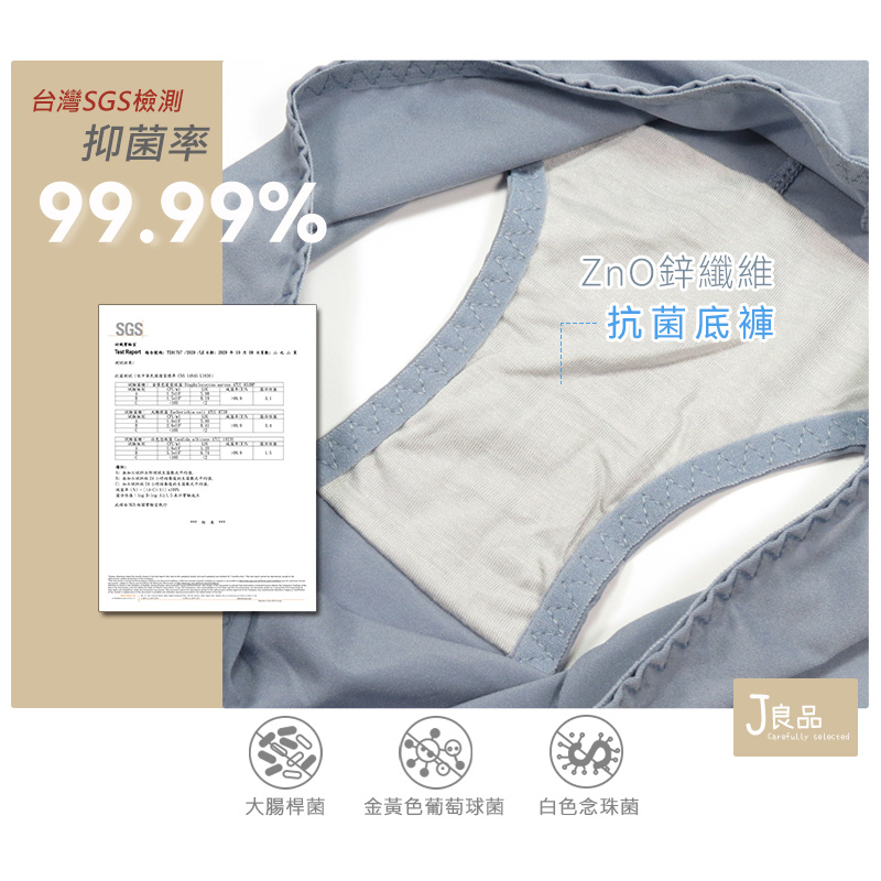 💖底褲添加抗菌鋅纖維,經 台灣SGS認證,金黃色葡萄球菌、白色念珠菌、大腸桿菌,滅菌率達99.99%.