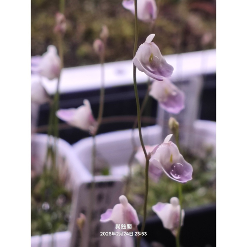 特徵:會開白色小花、根部會長捕蟲囊,進行捕抓微生物補充養分,不開花時就像草皮一樣!