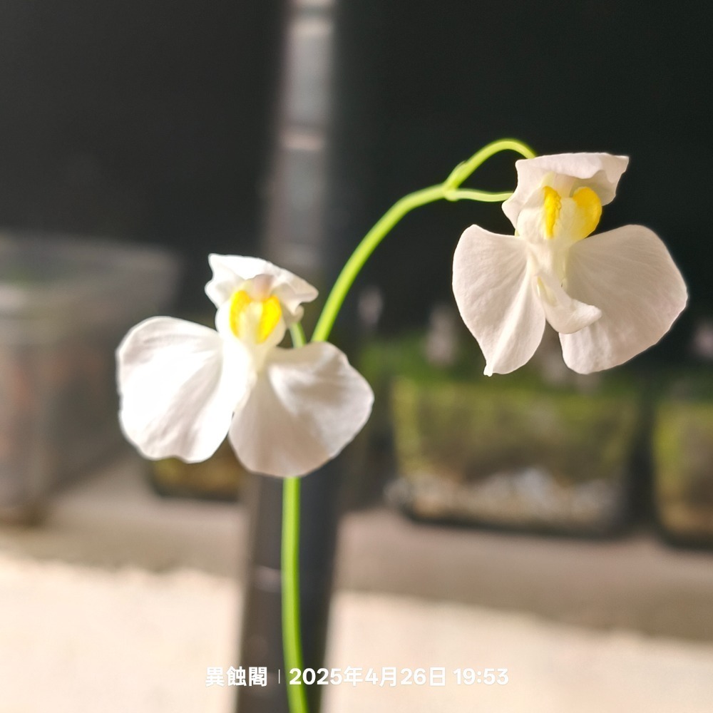 特徵:葉片像愛心形狀可愛而得名,為小腎葉狸藻和複裂狸藻交種,在蘭花狸藻裡面算是最難熱的品種,光照足夠時心型葉子會顯色,花期為近春季,花瓣為白色上萼花瓣夾帶紫色!!