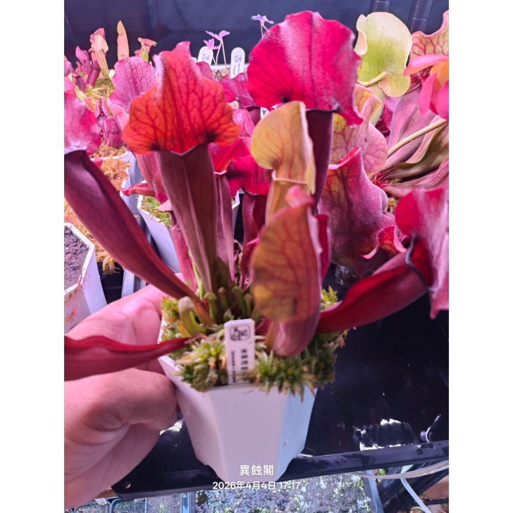 說明:查爾遜瓶子草Sarracenia x ‘Chelsonii’是由紫瓶子草Sarracenia purpurea 和 紅瓶子草Sarracenia rubra所混血配種出來的園藝瓶子草!非常好種生長快速!!喜愛強光易顯色!!